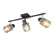 Design: Modern och industriell, med robust struktur i matt svart metall och tre riktbara spotlights i rökfärgat glas.